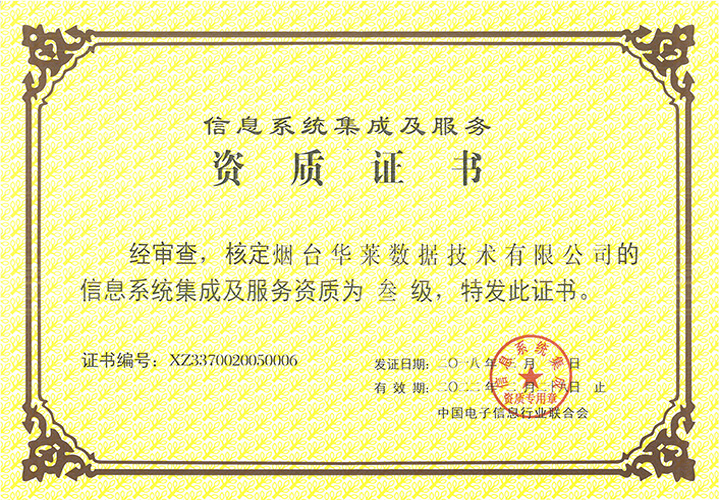 信息系統(tǒng)集成及服務(wù)資質(zhì)證書
