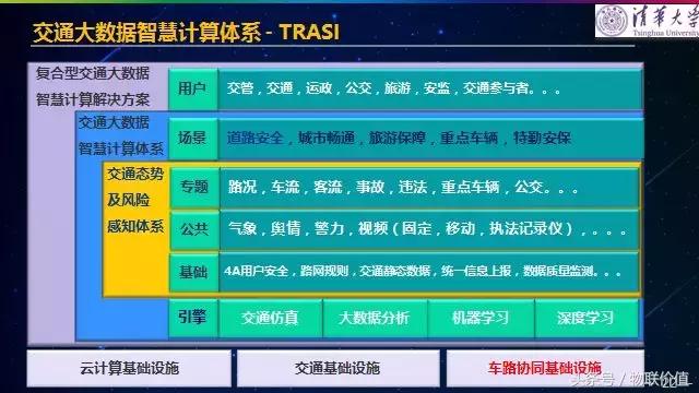 我們針對交通場景建構了一套計算體系,即交通大數(shù)據(jù)智慧的體系。這里面涵蓋了用戶、場景、專題、公共、基礎和引擎。在引擎上,我們應用了交通仿真技術,用于道路指導和道路建設,可以清晰的輔助分析預測交通堵塞的地段和原因。通過交通仿真、大數(shù)據(jù)分析、機器學習、深度學習等技術,每個引擎發(fā)揮著特定的效用。