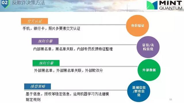 我們常用的一些反欺詐的數(shù)據(jù)和方法有:(1)身份驗(yàn)證,這個是非常重要的,身份驗(yàn)證在中國很偉大,如中國解決了第三方欺詐的問題。因?yàn)橹袊謾C(jī)實(shí)名認(rèn)證,有些時候你很難去做假,這樣我們可以交叉驗(yàn)證,這樣就提高了欺詐的成本;(2)法院/征信信息,內(nèi)部黑名單,有公司會專門整理這些信息,可以公開給我們使用。用戶信息整合,通過各公司間信息碰撞,規(guī)則匹配,如果發(fā)現(xiàn)過去欺詐行為就不給他提供金融服務(wù);(3)模型,評估用戶行為,進(jìn)行規(guī)則評判他這種行為是不是欺詐,如何減少錯殺準(zhǔn)確抓住欺詐人員。