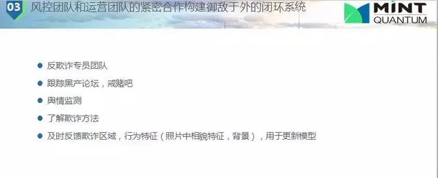 閉環(huán)系統(tǒng)也就是打標(biāo)簽,比如我們公司就有專門的反欺詐的專員不僅對已有的客戶,也會追蹤一些論團(tuán)、微信群或者黑產(chǎn)群、戒賭吧,了解他們的動態(tài),搜集數(shù)據(jù),這些會反饋在我們的模型上。及時獲取最新欺詐手段或技術(shù)非常重要。